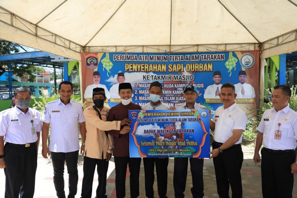 TARAKAN – Wali Kota Tarakan, dr. H. Khairul, M.Kes., secara simbolis menyerahkan empat ekor bantuan sapi dari PDAM Tirta Alam Kota T...