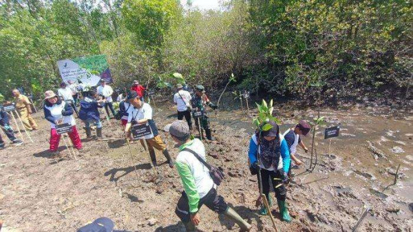 KBRN,Tarakan: Penanaman mangrove serentak digelar Selasa (31/10/2023) berlokasi di Jalan Kuburan Cina Kelurahan Gunung Lingkas Tarakan, Kalimant...