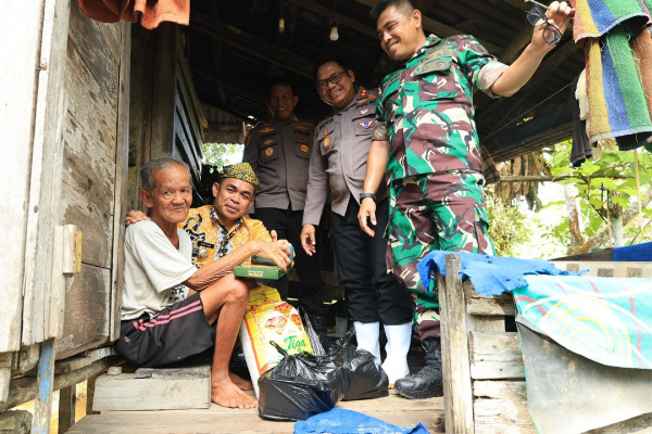 Pj. Wali Kota Tarakan, Dr. Bustan, S.E., M.Si., bersama Kapolres Tarakan, Dandim 0907/Tarakan, dan Lurah Juata Permai, menyerahkan bantuan sembako kep...