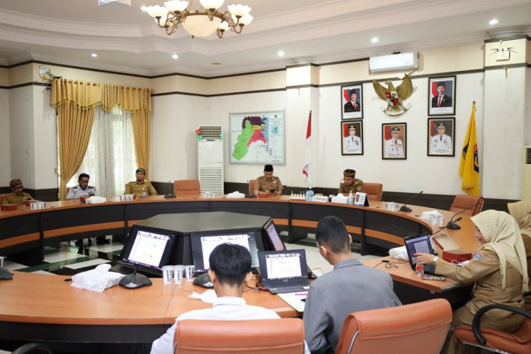 Penjabat Wali Kota, Dr. Bustan, S.E., M.Si, memimpin rapat dengan terkait aset pemerintah kota bersama Sekretaris Daerah, Para Assiten dan Perangkat D...