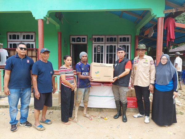 Pj. Wali Kota Tarakan, Dr. Bustan, S.E., M.Si., bersama Kepala Dinas Sosial dan Pemberdayaan Masyarakat, menyerahkan bantuan kepada korban tanah longs...