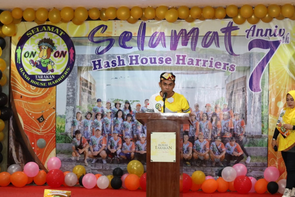 TARAKAN - Penjabat (Pj.) Wali Kota Tarakan, Dr. Bustan, S.E., M.Si., menghadiri peringatan Hari Ulang Tahun (HUT) ke-7 komunitas Hash House Harriers T...