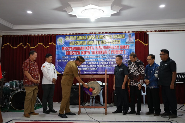 TARAKAN - Penjabat (Pj.) Wali Kota Tarakan, Dr. Bustan, S.E., M.Si., membuka Musyawarah Kota Perkumpulan Umat Kristen Kota Tarakan (PUKKT) yang disele...