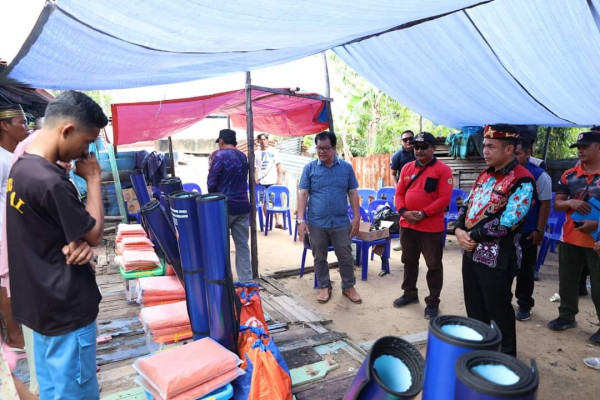 Pj. Wali Kota Tarakan, Dr. Bustan, S.E., M.Si, didampingi oleh Kepala BPBD serta Lurah Karang Anyar Pantai, menyerahkan bantuan secara simbolis kepada...