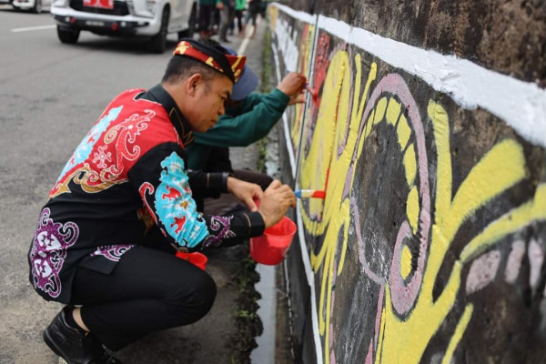 Pj. Wali Kota Tarakan, Dr. Bustan, S.E., M.Si, meninjau langsung kegiatan pengecatan mural khas Tarakan yang dilakukan oleh jajaran Dinas Lingkungan H...