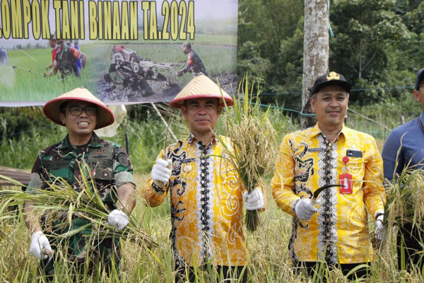 TARAKAN - Pj. Wali Kota Tarakan, Dr. Bustan, S.E., M.Si., memulai panen padi Varietas Biosalin yang dilakukan oleh Kelompok Tani Mapan Sejahtera pada...