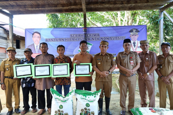 TARAKAN - Pj. Wali Kota Tarakan, Dr. Bustan, S.E., M.Si., secara simbolis serahkan bantuan pupuk NPK non subsidi kepada kelompok tani, Selasa (30/7/20...