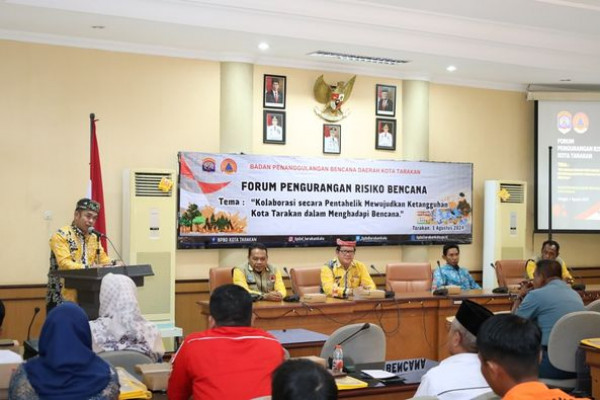TARAKAN - Pj. Wali Kota Tarakan, Dr. Bustan, S.E., M.Si., membuka Forum Pengurangan Risiko Bencana Kota Tarakan yang diselenggarakan oleh BPBD Tarakan...