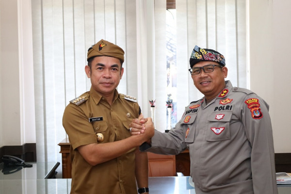 TARAKAN - Pj. Wali Kota Tarakan, Dr. Bustan, S.E., M.Si., menerima kunjungan silaturahmi dari Kapolres Tarakan yang baru menjabat, AKBP Adi Saptia Sud...
