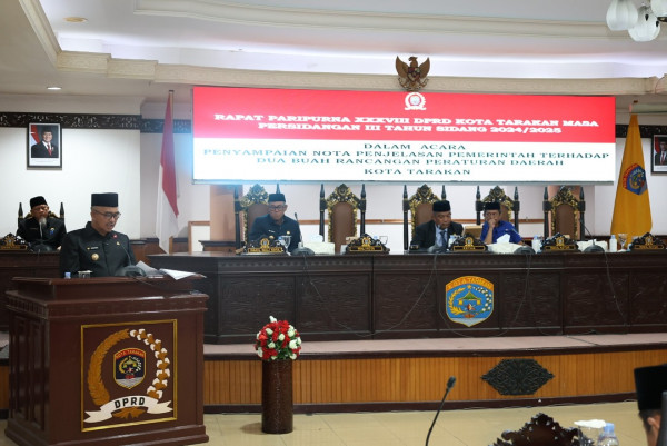 Tarakan - Wali Kota Tarakan, dr. H. Khairul, M.Kes., menghadiri dan menyampaikan Nota Penjelasan Pemerintah terhadap dua Rancangan Peraturan Daerah (R...