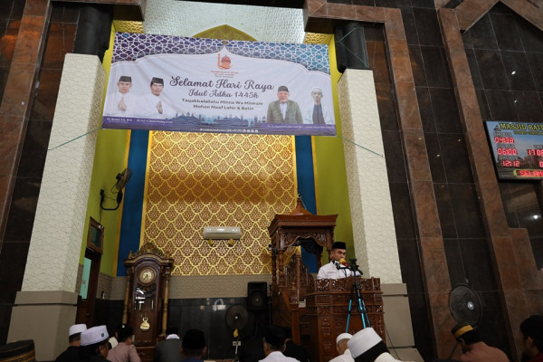 TARAKAN - Pj. Wali Kota Tarakan, Dr. Bustan, S.E., M.Si., melaksanakan Sholat Idul Adha 1445 H/ 2024 M di Masjid Baitul Izzah, Kota Tarakan, Senin (17...