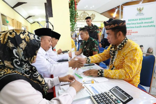 TARAKAN - Pj. Wali Kota Tarakan Dr. Bustan, S.E., M.Si., menyerahkan zakat fitrah dalam kegiatan Tarakan Berzakat yang digelar pada Kamis, 4 April 202...