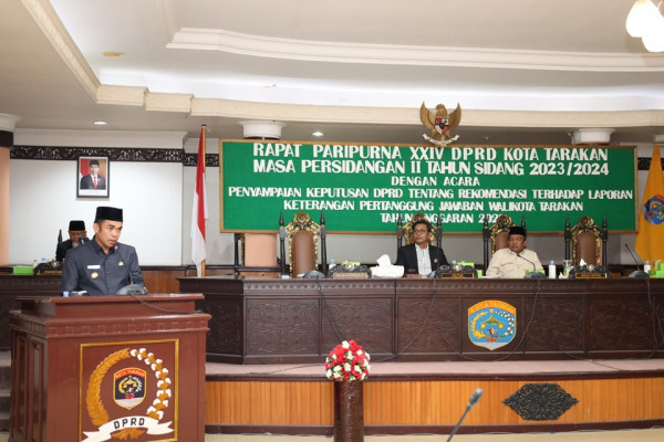 TARAKAN - Pj. Wali Kota Tarakan, Dr. Bustan, S.E., M.Si., hadir dalam Rapat Paripurna ke XXIV Dewan Perwakilan Rakyat Daerah Kota Tarakan Masa Persida...