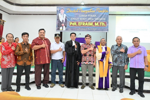 Tarakan - Pj. Wali Kota Tarakan, Dr. Bustan, S.E., M.Si., menghadiri acara Ibadah Peneguhan Pendeta Gereja Toraja Jemaat Bukit Amal Tarakan Pdt....