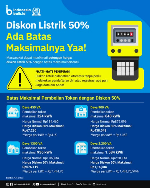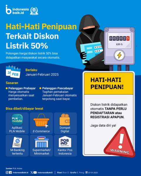 Hati-Hati Penipuan Modus Diskon ListrikPemerintah melalui PLN memberikan program diskon listrik 50% bagi masyarakat pada Januari hingga Februari 2025....