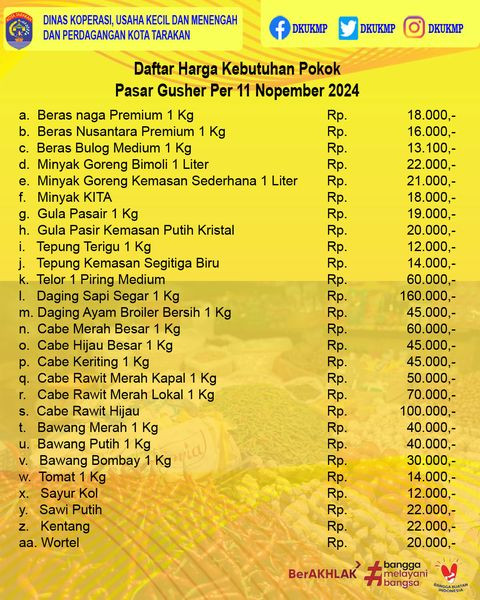 Daftar Harga Kebutuhan Pokok 11 November 2024 di Kota TarakanUpdate Daftar Harga Kebutuhan Pokok di Kota TarakanTanggal 11 November 2024#DKUKMP #Bapok...