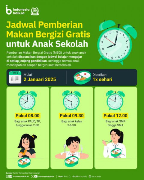 Presiden Prabowo Subianto akan segera merealisasikan Makan Bergizi Gratis (MBG) untuk anak sekolah, dari mulai tingkat PAUD, SD, SMP, hingga SMA.Melan...
