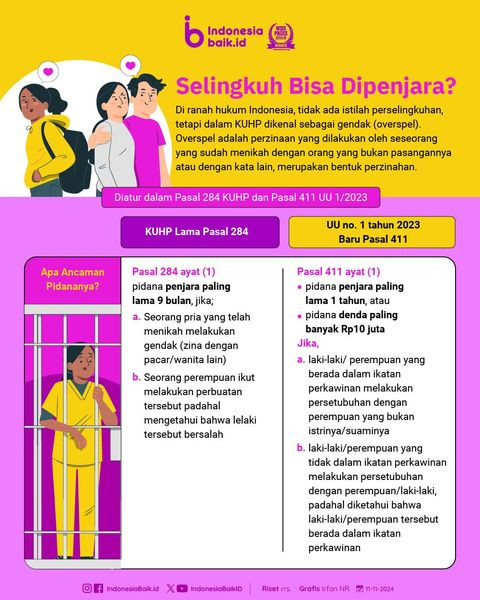 Di ranah hukum Indonesia, perselingkuhan yang dikenal dalam Kitab Undang-Undang Hukum Pidana (KUHP) sebagai "overspel" atau perzinaan, dapat berujung...
