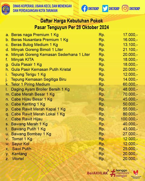 Daftar Harga Kebutuhan Pokok 28 Oktober 2024 di Kota TarakanUpdate Daftar Harga Kebutuhan Pokok di Kota TarakanTanggal 28 Oktober 2024#DKUKMP #Bapok #...