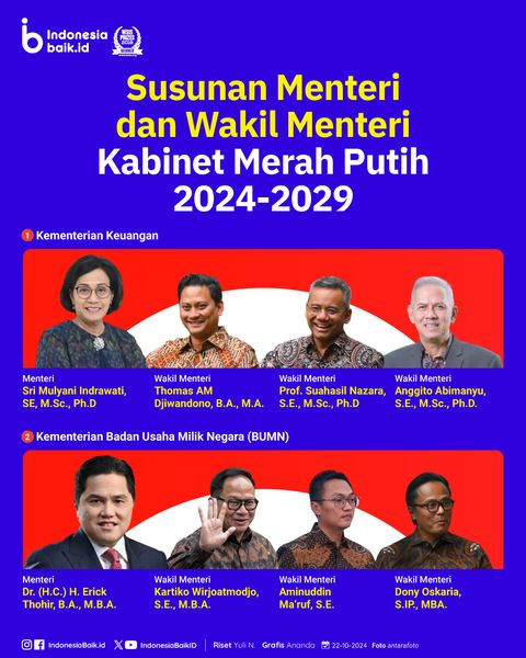 Presiden Republik Indonesia, Prabowo Subianto didampingi Wakil Presiden Gibran Rakabuming Raka resmi melantik Kabinet Merah Putih masa jabatan 2024-20...