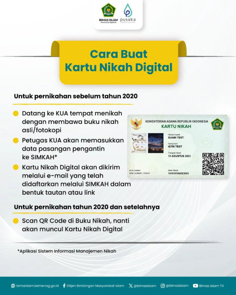 Begini Cara Buat Kartu Nikah Digital untuk Pernikahan Sebelum dan Sesudah 2020!Untuk pernikahan sebelum tahun 2020, kamu perlu datang ke KUA tempat me...