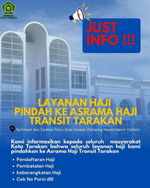 Layanan Haji Pindah Ke Asrama Haji Transit TarakanKampung Empat, Kecamatan Tarakan Timur Kota Tarakan (Samping Masjid Islamic Center)Sumber FB : Kemen...