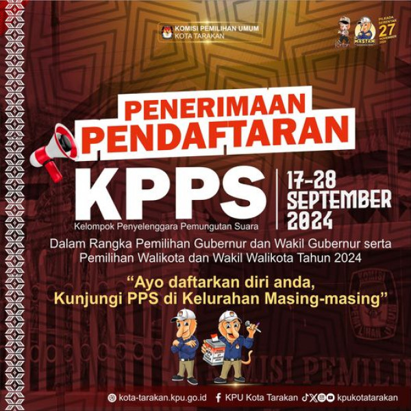 Penerimaan Pendaftaran Kelompok Penyelenggara Pemungutan Suara (KPPS)#TemanPemilih KPU Kota Tarakan membuka Penerimaan Pendaftaran Kelompok Penyelengg...