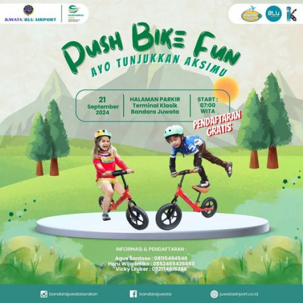 Push Bike Fun, Pendaftaran GratisHi #SahabatBandaraJuwata KerenNih bagi sahabat yang memiliki putra/putri hobby Push Bike, kami membuka kesempatan bag...