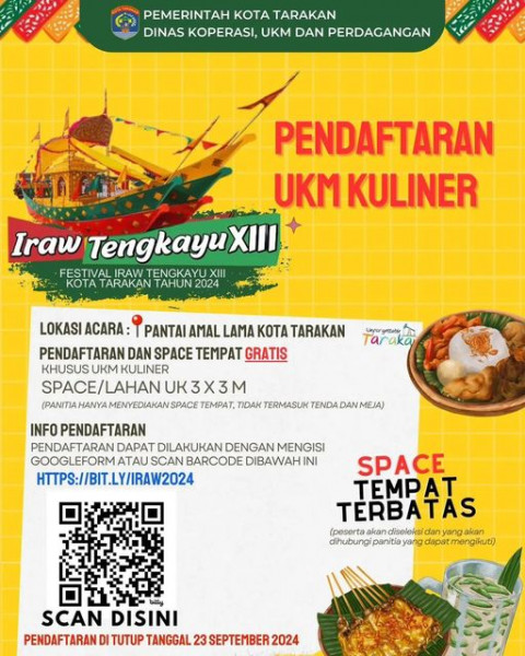 Pendaftaran dan Space Tempat Gratis Khusus UKM KulinerPendaftaran UKM Kuliner Festival Iraw Tengkayu XIII Ayo bergabung bersama kami dalam Festiv...