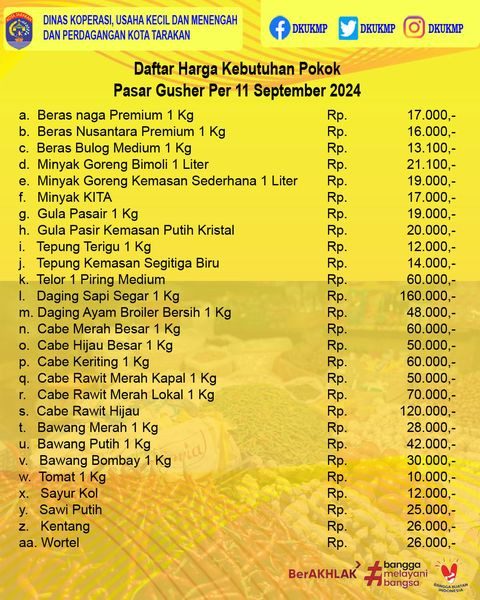 Daftar Harga Kebutuhan Pokok 11 September 2024 di Kota TarakanUpdate Daftar Harga Kebutuhan Pokok di Kota TarakanTanggal 11 September 2024#DKUKMP #Bap...
