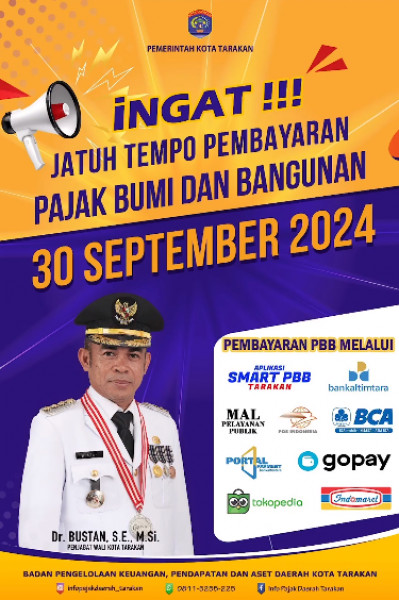 Ingat, Jatuh Tempo Pembayaran Pajak Bumi dan Bangunan 30 September 2024Haloo...masyarakat Kota Tarakan...Ingaattttt...gak terasa sudah masuk bulan Sep...