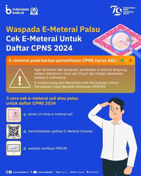 Waspada E-Meterai Palsu, Cek E-Materai Untuk Daftar CPNS 2024Pengadaan Calon Pegawai Negeri Sipil (CPNS) 2024 dibuka untuk lulusan SMA/sederajat hingg...