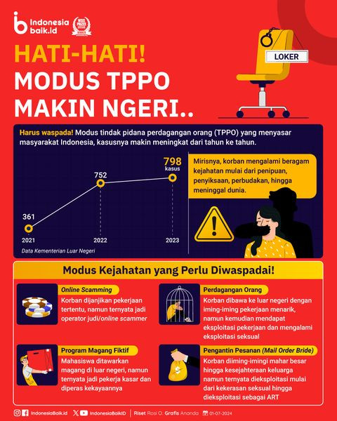 Hati-Hati! Modus TPPO Makin Ngeri..Umumnya, para pelaku kejahatan TPPO memberikan tawaran menarik kepada para calon korban dengan iming-iming gaji tin...