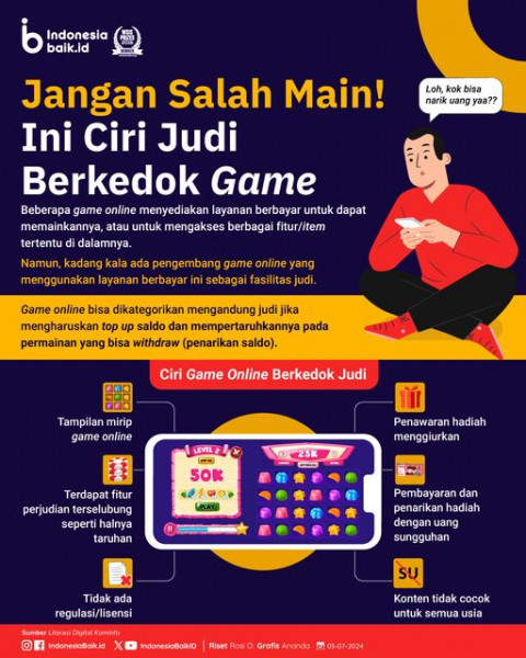 Jangan Salah Main! Ini Ciri Judi Berkedok GameBeberapa game online menyediakan layanan berbayar untuk dapat memainkannya, atau untuk mengakses berbaga...