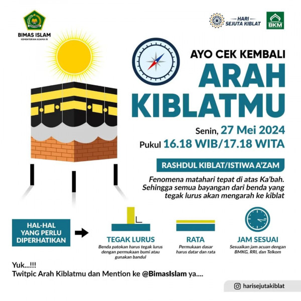 Arah kiblat menjadi hal yang sangat penting bagi Umat Islam. Jangan sampai salah, yuk cek kembali arah kiblatmu!Bersama "Hari Sejuta Kiblat", Senin, 2...