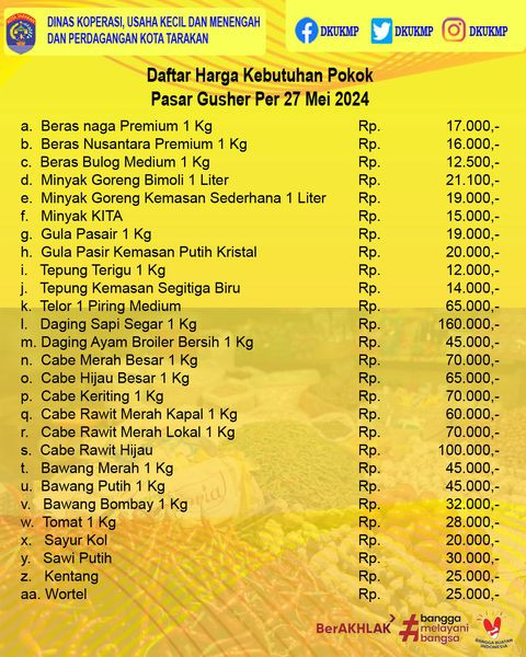 Daftar Harga Kebutuhan Pokok 20 Mei 2024 di Kota TarakanUpdate Daftar Harga Kebutuhan Pokok di Kota TarakanTanggal 20 Mei 2024#DKUKMP #Bapok #KotaTara...
