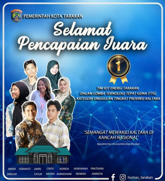 Selamat Pencapaian Juara I Tim IOT Energi Tarakan“Selamat kepada Tim Energi Tarakan atas prestasi gemilang dalam Lomba Teknologi Tep...