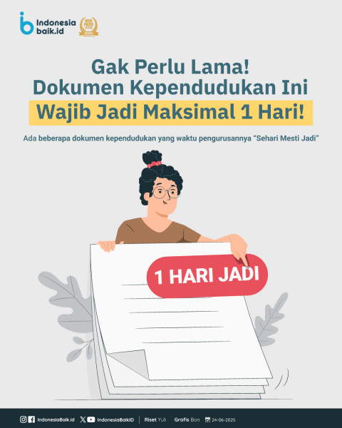 Dokumen Kependudukan yang Wajib Selesai Dalam 1 HariSesuai Permendagri No. 19 Tahun 2018, 6 dokumen kependudukan seperti KTP dan KK wajib disele...