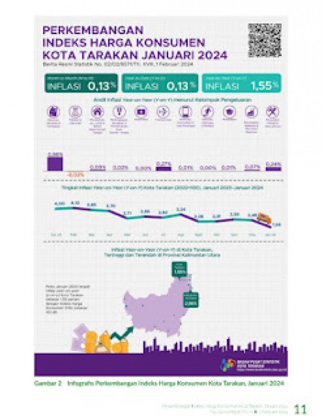 Inflasi Kota Tarakan Bulan Januari 2024Perkembangan Indeks Harga Konsumen Kota Tarakan Januari 2024Pada Januari 2024 terjadi inflasi year on year (y-o...
