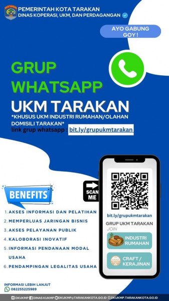 Grup Whatsapp UKM Kota Tarakanmari bergabung , Grup ini didedikasikan khusus untuk para pelaku UKM Kota Tarakan di bidang produk industri rumah tangga...
