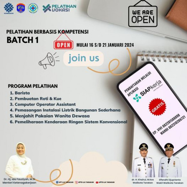 Pendaftaran Batch 1 sudah open nih, daftar buruan yuukkk goy..Pelatihan di laksanakan di workshop UPTD LLK Tarakan (non boarding)Untuk tutorial pendaf...