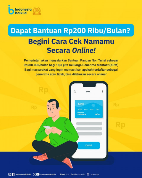 Bantuan Pangan Non Tunai, Kamu Dapat Gak Ya?Pemerintah melalui Kementerian Sosial kembali menyalurkan Bantuan Pangan Non Tunai (BPNT) sebesar Rp200.00...