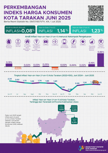 Perkembangan Indeks Harga Konsumen Kota Tarakan Juni 2025Juni 2025 inflasi Year on Year (y-on-y) Kota Tarakan sebesar 1,23 persen.Pada Juni ...