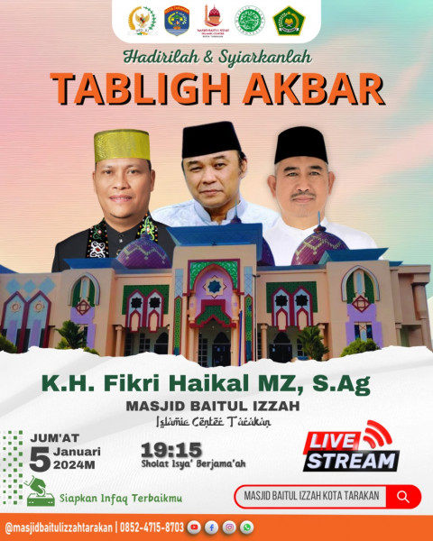 Hadirilah & SyiarkanlahTabligh Akbar bersamaKH. FIKRI HAIKAL MZ (putra Alm. KH.Zainuddin MZ)Pada hari : Jum'at, 5 Januari 2024 Pukul : 19.15...
