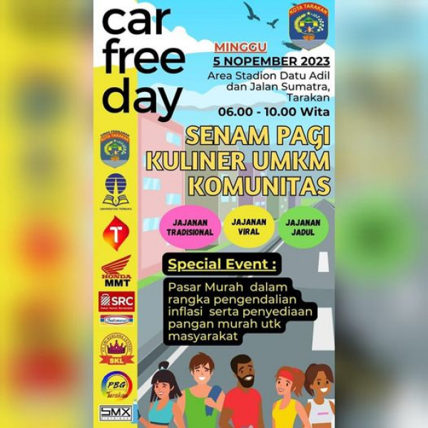 Ayo! Meriahkan Car Free Day di sepanjang Jalan Sumatra mulai dari Don Bosco sampai dengan Kawasan Stadion Datu Adil Kota Tarakan pada hari Minggu, 5 N...
