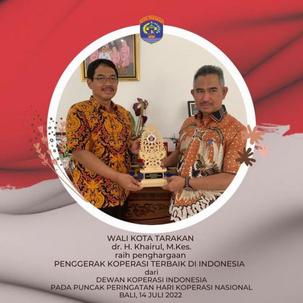 TARAKAN – Wali Kota Tarakan, dr. H. Khairul, M.Kes., meraih penghargaan penggerak Koperasi Terbaik dari Dewan Koperasi Indonesia (DE...