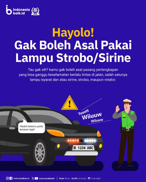 Gak Semua Orang Boleh Pakai Lampu StroboSetiap pengendara tidak boleh asal pasang perlengkapan yang bisa ganggu keselamatan berlalu...