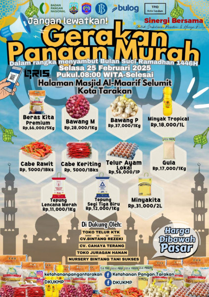 Dalam rangka pengendalian Inflasi Daerah, khususnya mengantisipasi gejolak harga menjelang Ramadhan Tahun 2025, Pemerintah Kota Tarakan melalui Dinas...