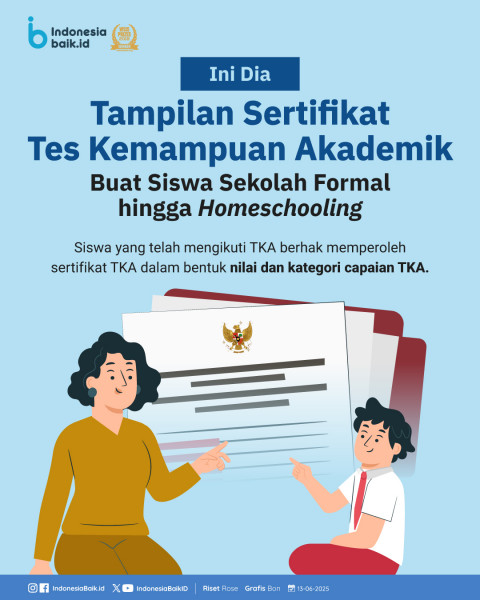 Ini Dia Tampilan Sertifikat Tes Kemampuan Akademik, Buat Siswa Sekolah Formal hingga HomeschoolingKementerian Pendidikan Dasar...