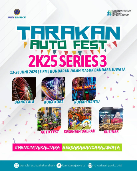 Hi Sahabat Bandara JuwataTarakan Auto Fest 2K25 Series 3 kini hadir kembali di Bandara Juwata Tarakan.Auto Fest 2025 Series 3 kali ini selain menyedia...